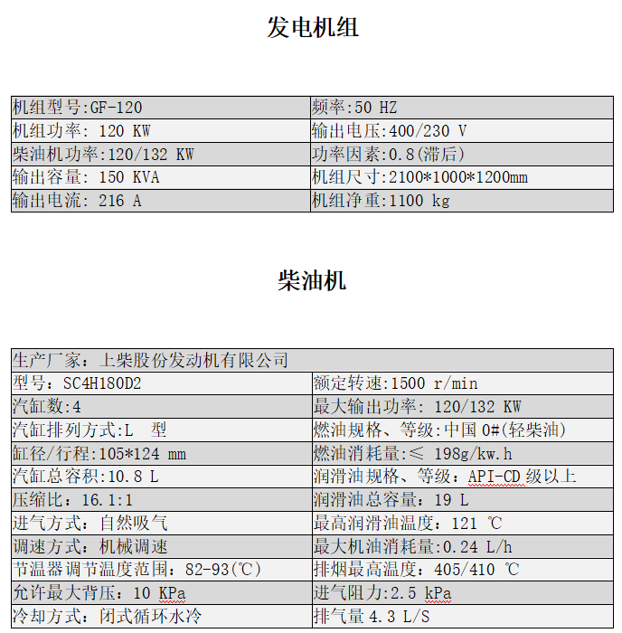 機組在下列條件下,能夠可靠的工作輸出持續功率:海拔高度:≤3000 m;環境溫度:40℃相對濕度:85%。