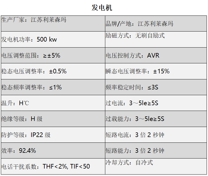 機組在下列條件下,能夠可靠的工作輸出持續功率:海拔高度:≤3000 m;環境溫度:40℃相對濕度:85%。